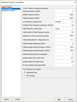 - Individual Ports: when selecting, the user directly designates and uses power pins for PDN analysis.