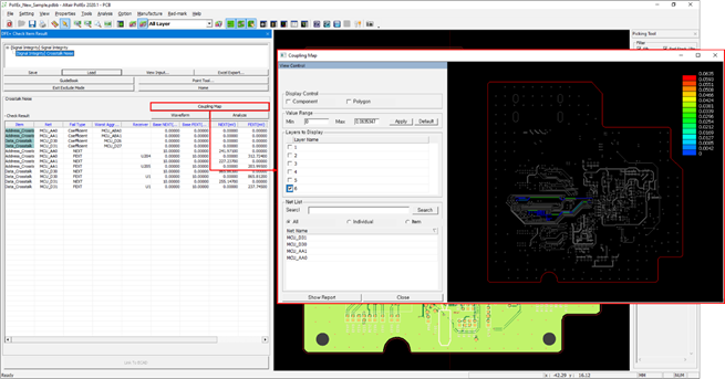 It is a function to see the Coupling result of each net as a map. Based on the result of the Crosstalk Noise item, the result is displayed on the map.
