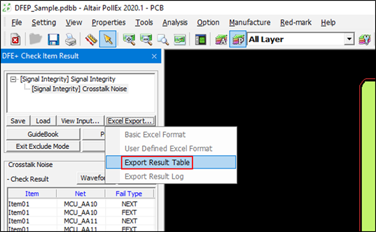 - Show Report: The specific results of the coupling of each net are reported in Excel.