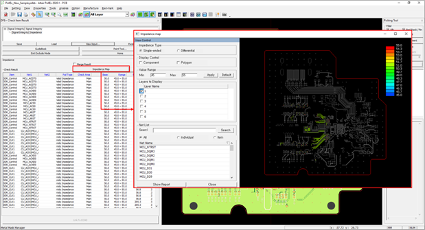 It is a function to see the impedance result of each net as a map. Based on the result of the impedance item, the result is displayed on the map.