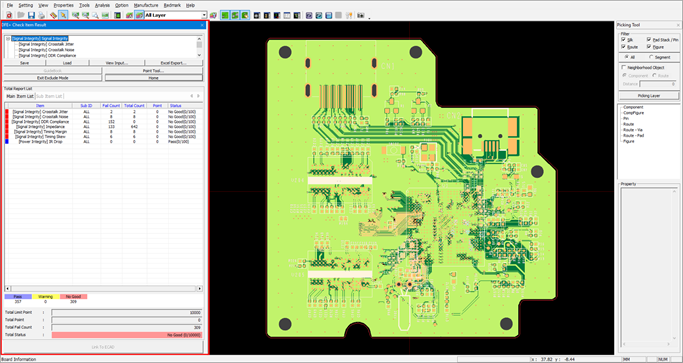- Total Report List: The analysis result summary is displayed in this window. Upon clicking each item, the Check Result dialog will be displayed where you can review result in more detail.