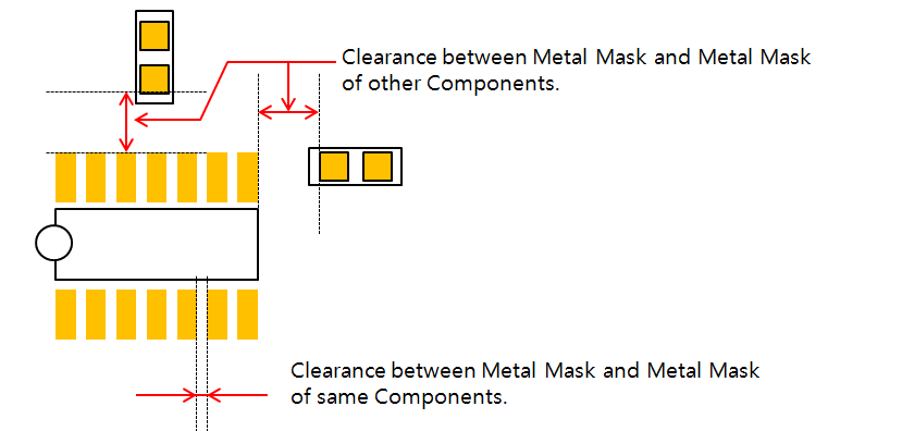 Clearance between Metal Mask and Other Component’s Solder Mask: Check