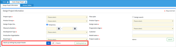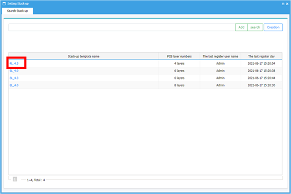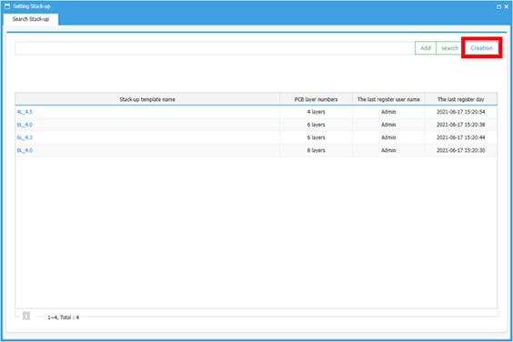 Figure 3.The project leader can create a new stack-up information by clicking Creation.