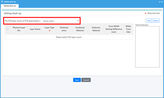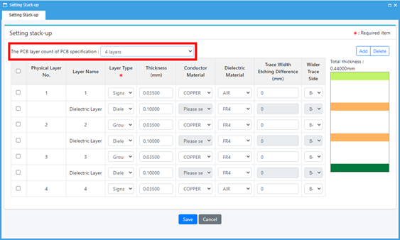 Figure 5.After selecting the layer count, the stack-up for the layer counter will be shown automatically. This can be used as is or modified.