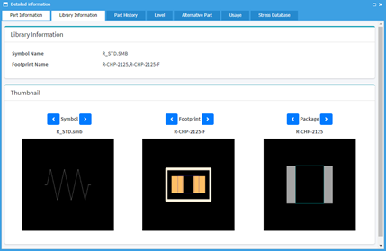 The generated library geometry images are displayed in the Part search > Library information tab.