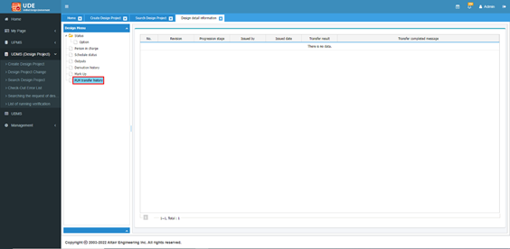 Display the PLM transfer history when UDE is linked to the corporate system.