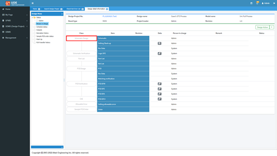 The design process starts from check out the schematic design. Only the person in charge can check out and check in.