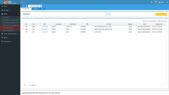The UDE System displays geometries of the symbol and footprint in the part detailed information. When the geometry information is changed, it must be updated.