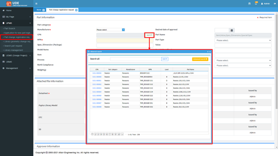 Note: After requesting the part change registration, you can check it in the waiting list of My request box.