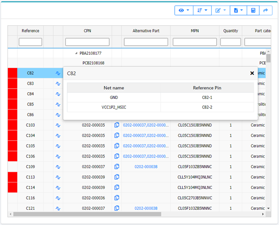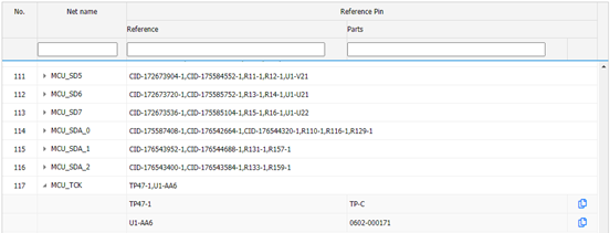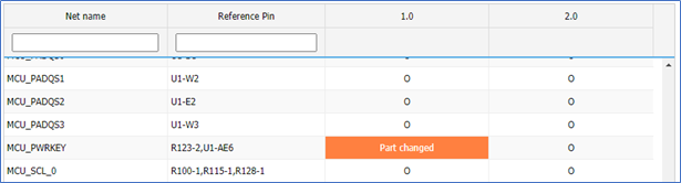 revisions and display the changed net names or changed parts.