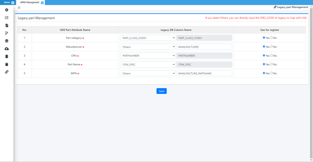 part attributes from corporate system into UPMS part properties.