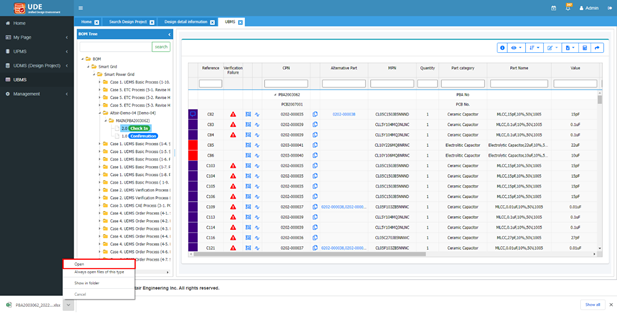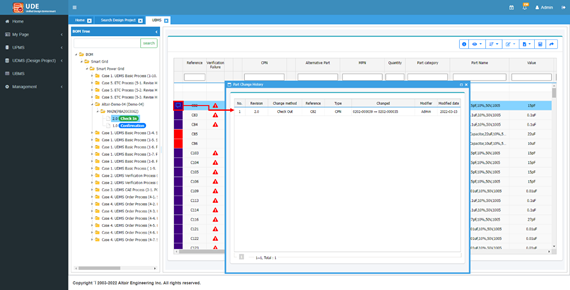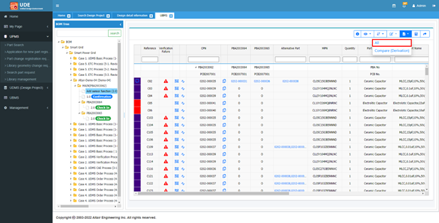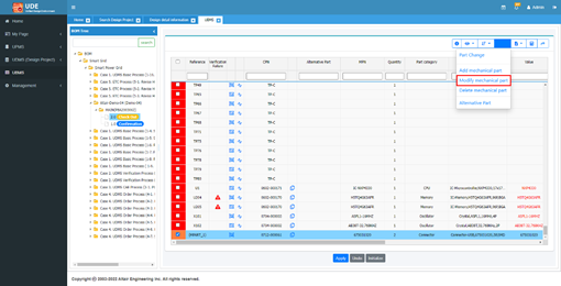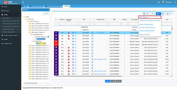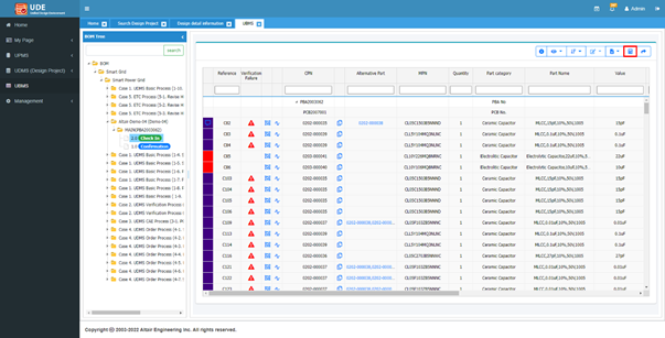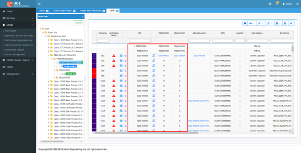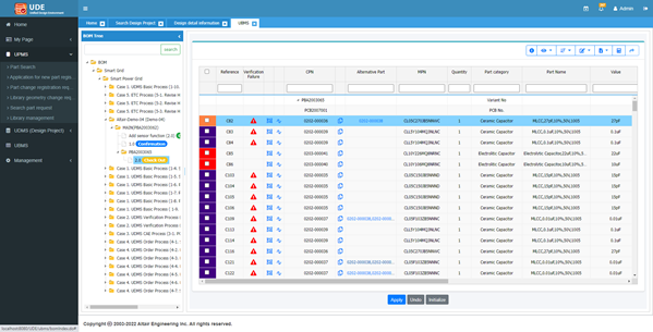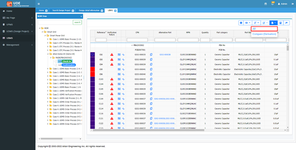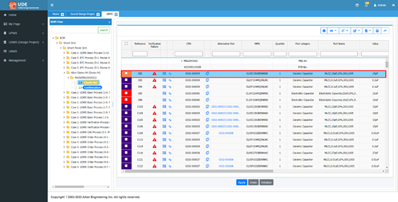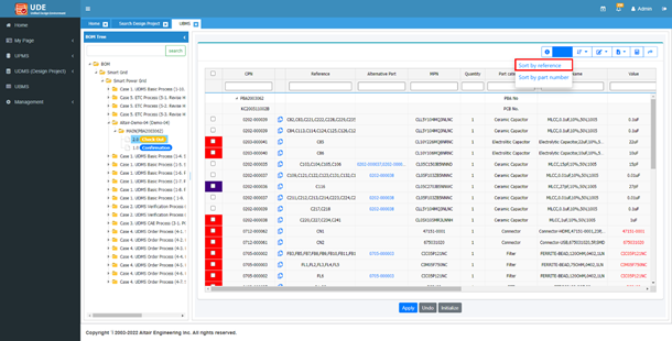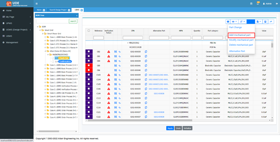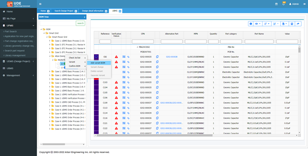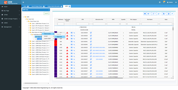 UBMS: Generating BOM with the part list, which is extracted in design check in process, and supporting edit, report, manage variant and back annotation functions.