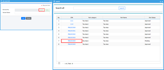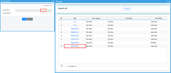 When you proceed with a product design, the same product may be applied with some parts changed depending on the destination. In such cases, you can apply derivative parts to the same design drawing to create and manage BOMs for multiple destinations.