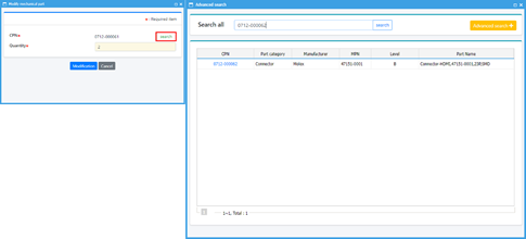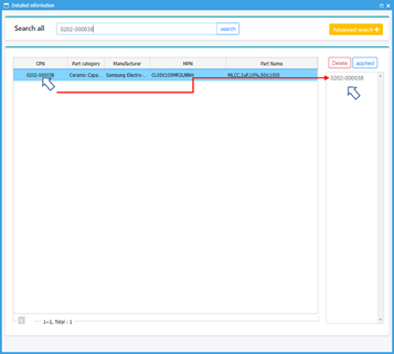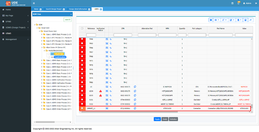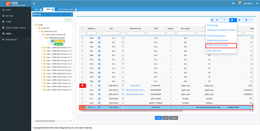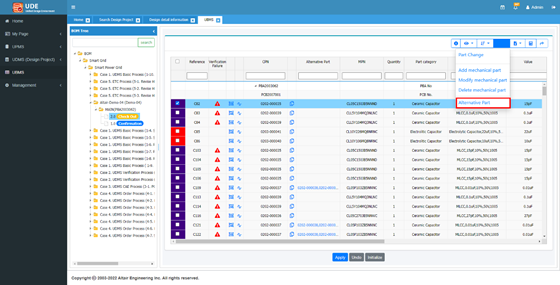 You can see the added alternative part in the BOM list. Once you finish the modification, click Apply. With editing alternative part function, you can add and delete the alternative part.