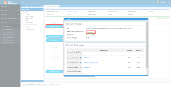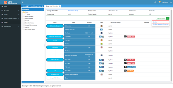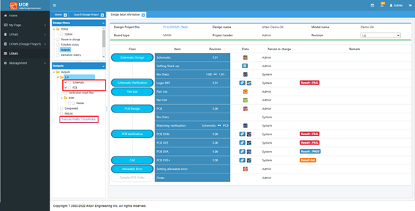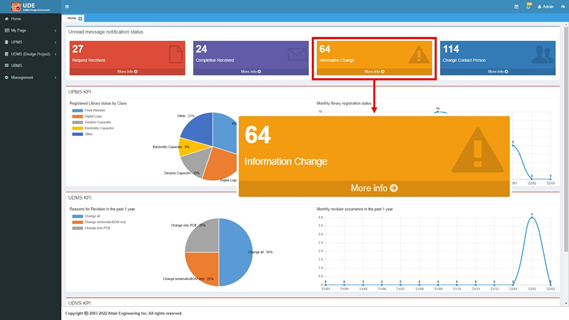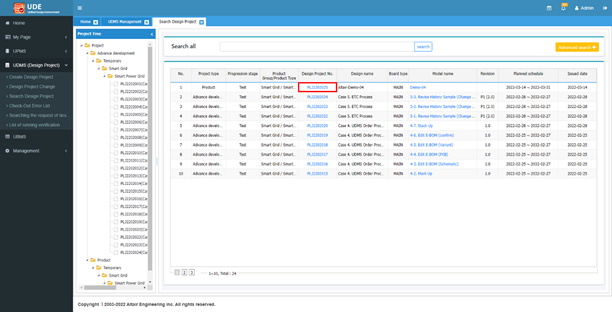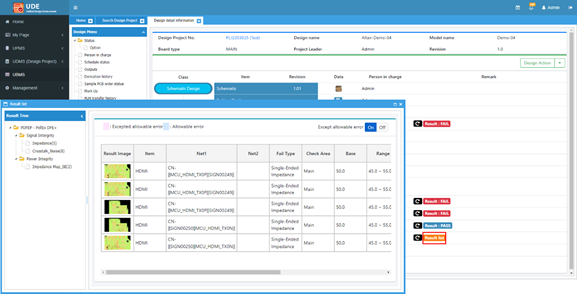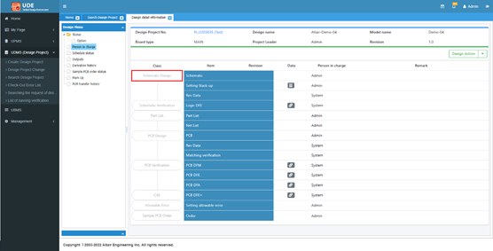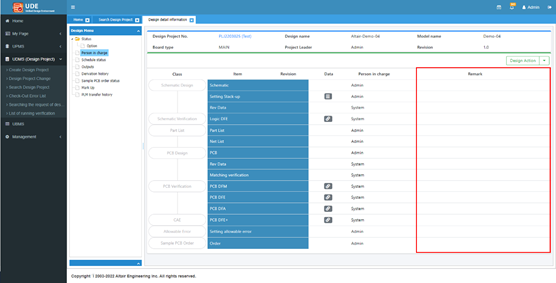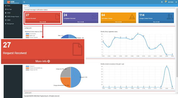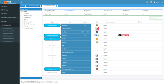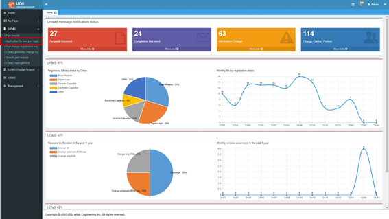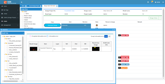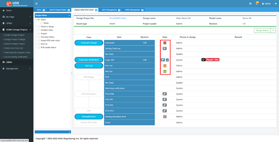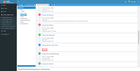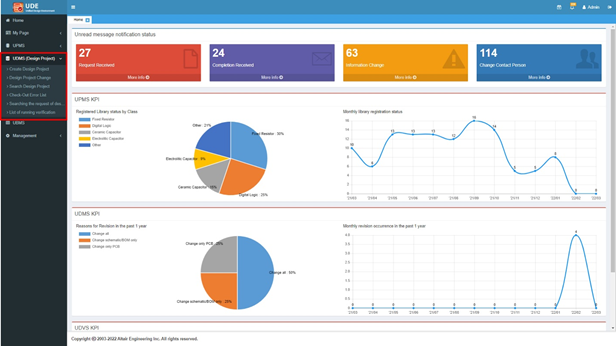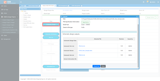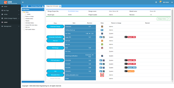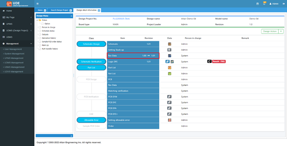 UDMS: Unified management system which manages design data from creation to finish through managing each development process. Automated checking system for suitability of part and consistency between schematic, PCB and BOM.
