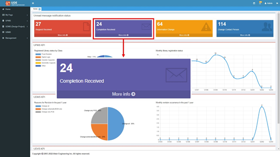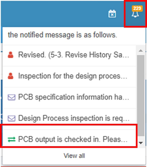 Check messages from system such as the results of your own request and other’s request for your approval, change information of parts use, and your designation as the person in charge of the development process.