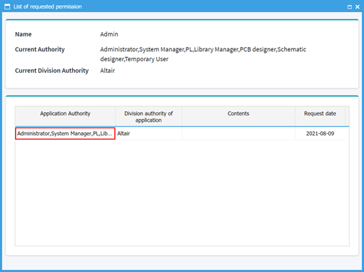Figure 20.If the permission request is approved by the administrator, it is reflected only after logout and login again.