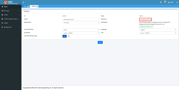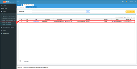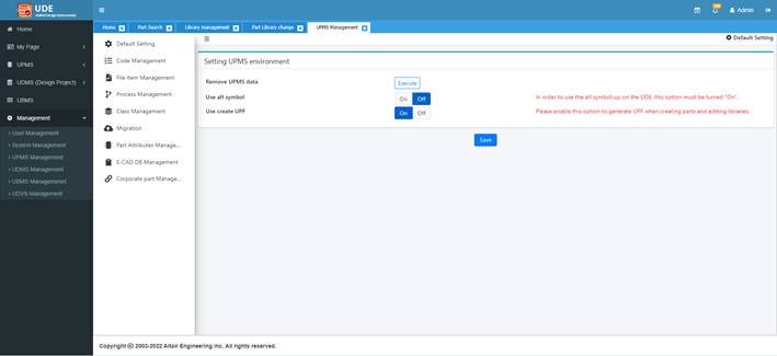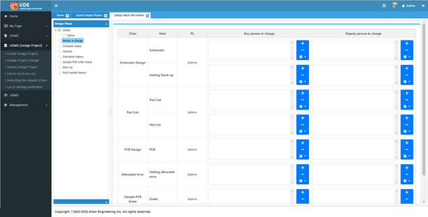UPMS: Standardization and management module for library and part catalog information used for electrical design in the system.