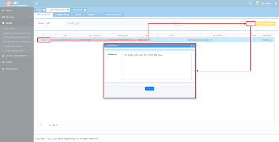 Unified Part Management System (UPMS) is a management module by standardizing part library and catalog information used in electronic circuit design in the system.