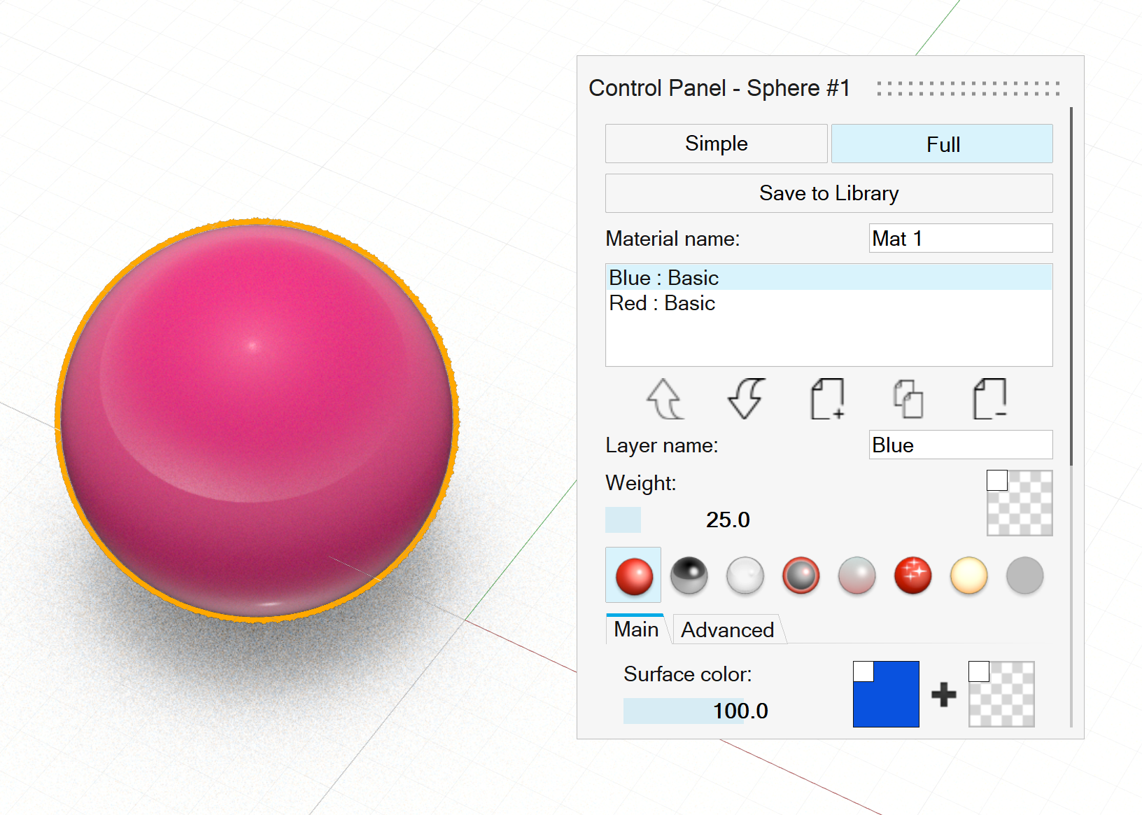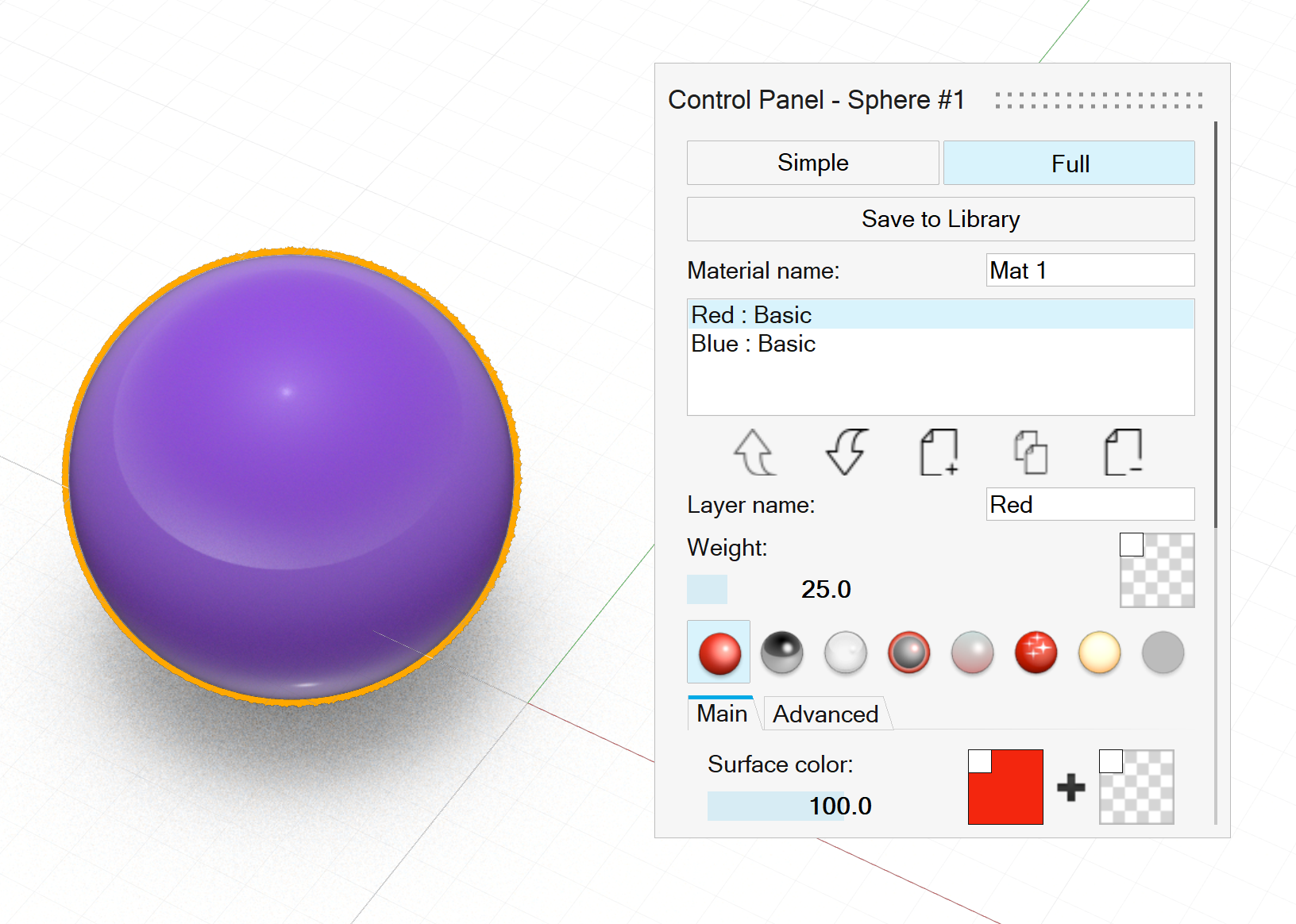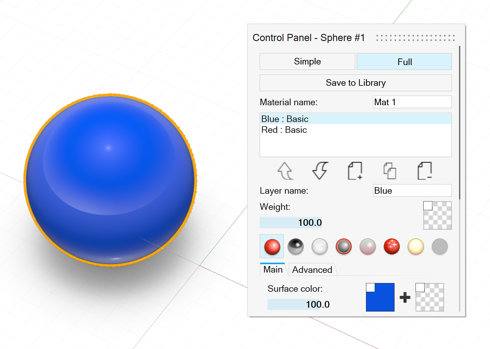 Here, the blue basic layer weight is set to 100%. Thus, we cannot see the red basic layer underneath.