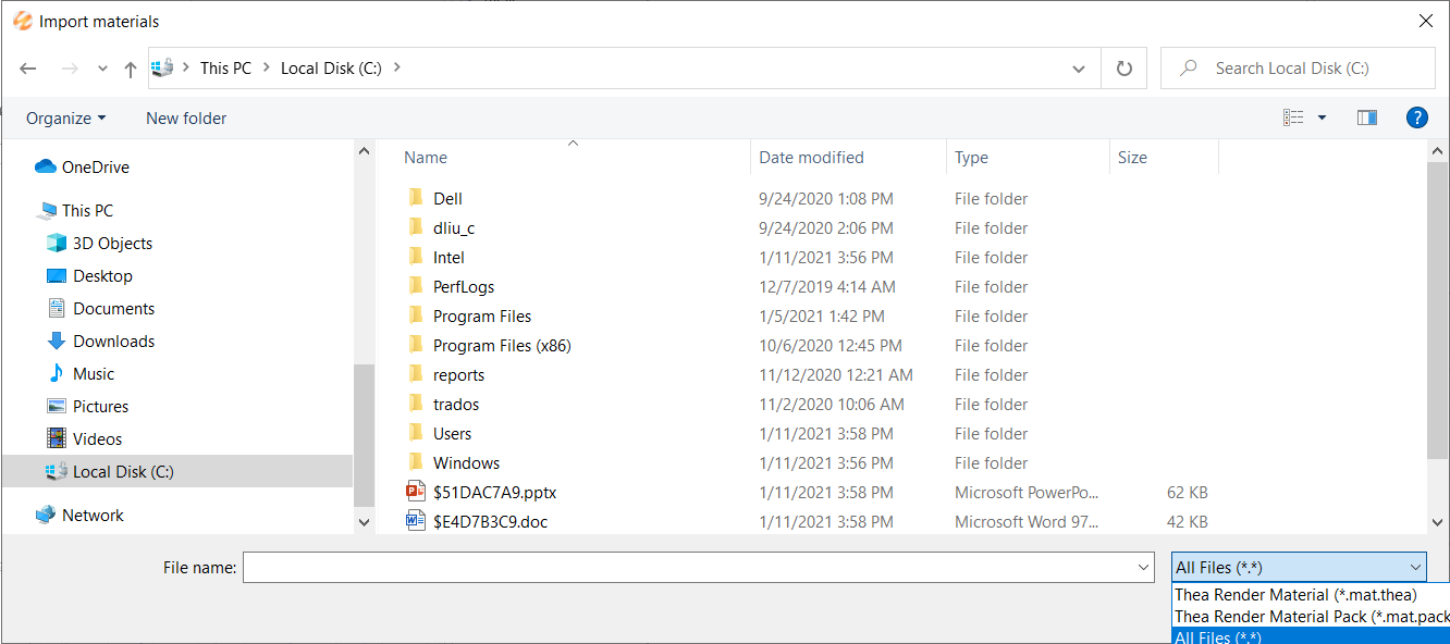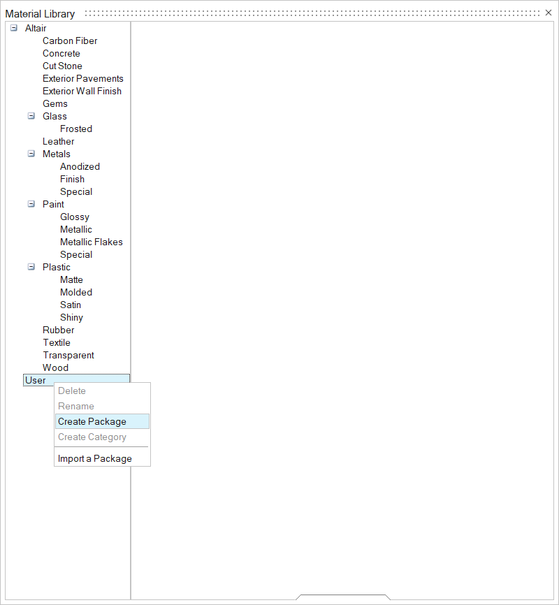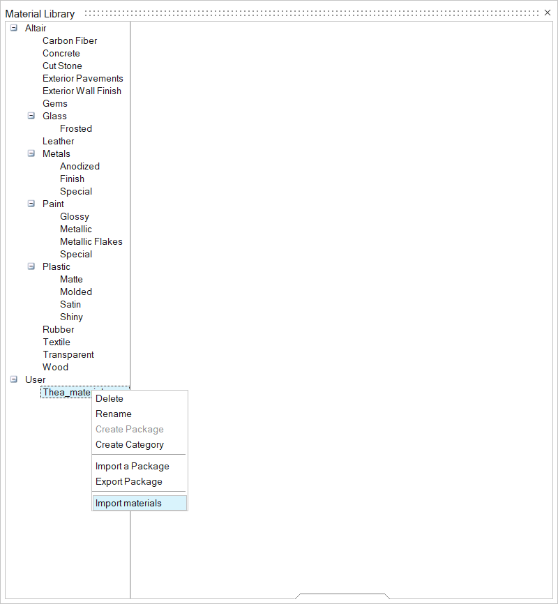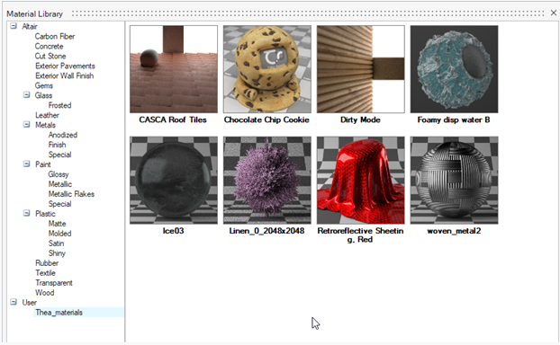 Assign the Thea materials to categories. For more information, see Organize the User Material Library.