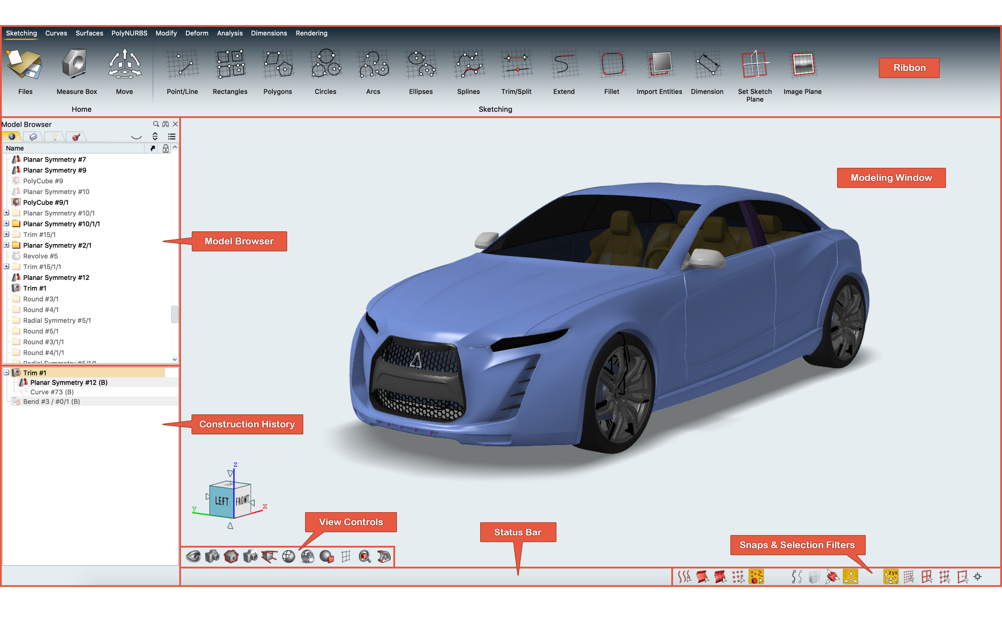 - モデリングウィンドウはモデルを操作するための場所であり、その左下隅にはビューコントロールがあります。