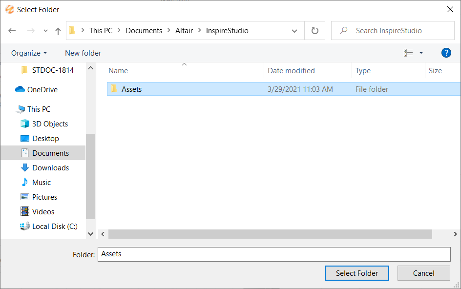 - 正しい場所にブラウズして、このフォルダを選択します。