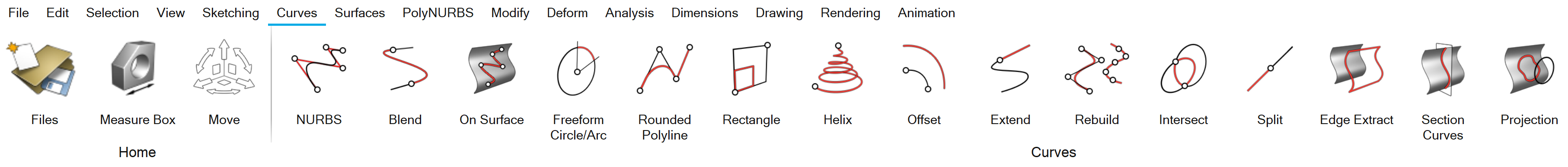 アプリケーションの一番上にあるリボンには、Inspire Renderで利用可能なツールがすべて表示されています。リボンの上部にあるタブをクリックして、さまざまなメニューとリボンを切り替えます。アクティブなリボンの名前には青色の下線が付いています。