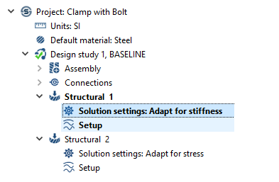 - この目標は、一般的な応力計算に使用します。4つのアダプティブパスが使用されるほか、応力が大きい場面で高い精度を実現するために、追加のロジック(Adapt to featuresとAdapt to thin solids)が有効になります。全体的なアダプティブ計算のみが使用されます。