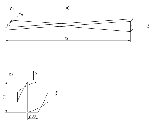テスト番号VS02せん断荷重を受けたときのねじれた片持ち梁の先端のたわみを求めます。