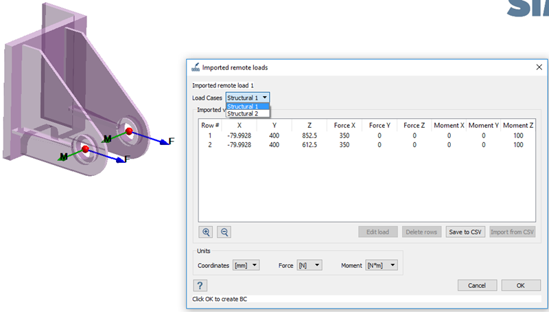 - 了解如何将力和远程载荷从 .csv 文件导入 SimSolid。