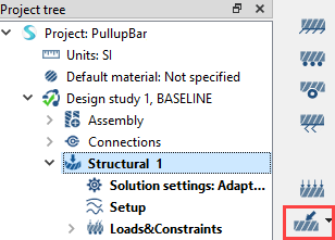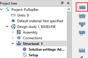 运行设计研究 求解设计研究中的所有分析。 在项目树中,选择设计研究1分支。 点击运行所有分析 . 在求解管理器中,确认已选择所有分析。 点击求解。 SimSolid 会运行设计研究分支中的所有分析。结束后,每个分析的结果分支将显示在项目树中。注: 分析 1 在 11 秒内运行。SimSolid 会重复使用分析 2 的模型数据结构,因此分析会运行得更快。