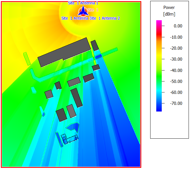Figure 1. Power calculated using the COST 231 - extended Walfisch-Ikegami model.