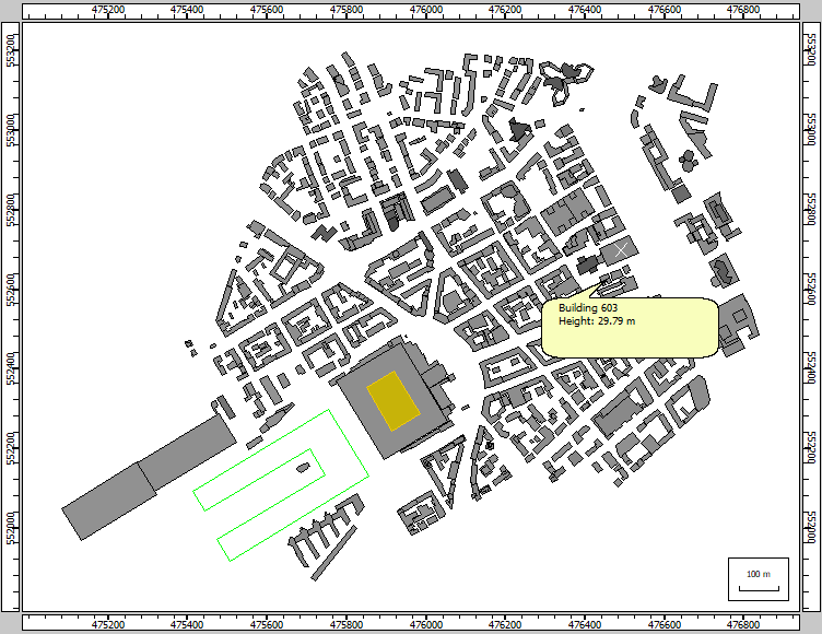 Hover with the mouse over a building to view the building height in a balloon