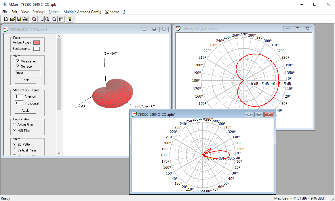 Antenna pattern files can also be converted and created using the tool AMan, which features a graphical user interface (GUI) and a 3D view of the antenna pattern including different converters for well-known file formats (for example, MSI).