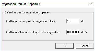 For each clutter class a frequency dependent attenuation can be defined in the clutter table. You can select if this additional attenuation is considered during the prediction or if the value is neglected. If no properties for a class ID are found in the clutter table, you can decide if the software should cancel all further prediction steps or if only this pixel is not predicted.