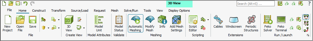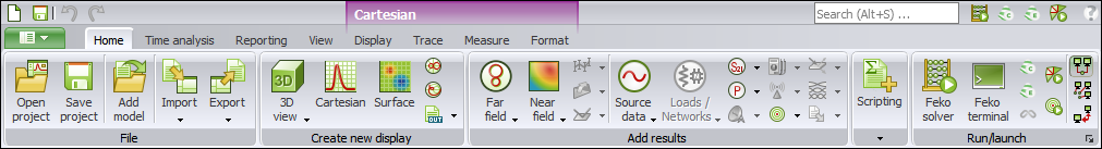Figure 1. The Home tab in CADFEKO.