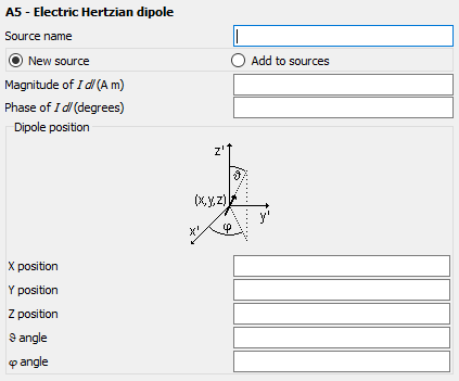 Figure 1. The A5 - Electric Hertzian dipole dialog.