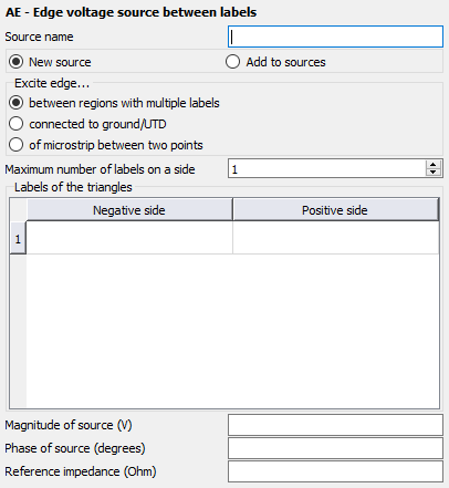 Figure 1. The AE - Edge voltage source between labels dialog.