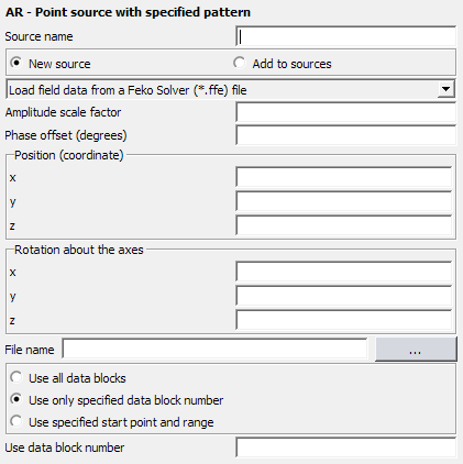 Figure 1. The AR - Point source with specified pattern dialog.