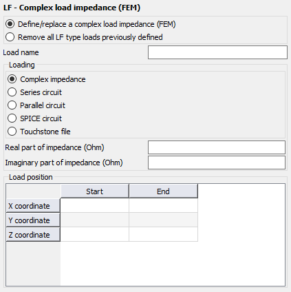 Figure 1. The LF - Complex load impedance (FEM) dialog.