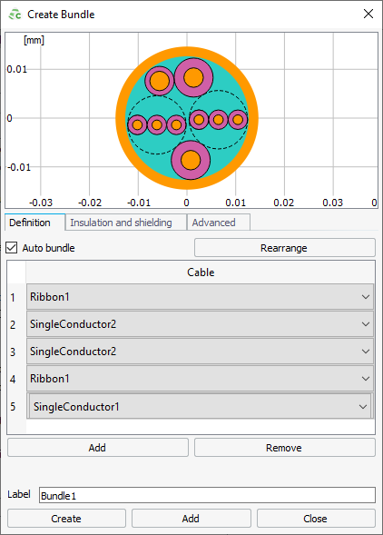 Click Create to create the cable bundle and to