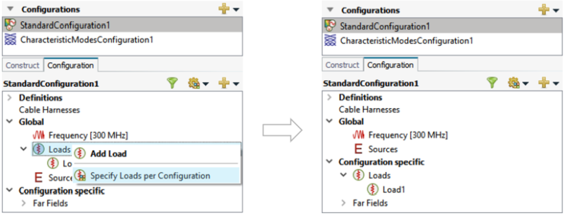 As an example, loads are converted to configuration specific loads, but the steps are similar for converting frequency, sources and power.