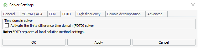 To solve a model with the finite difference time domain (FDTD), you must activate the solver for the model.