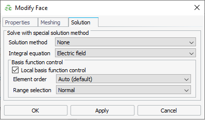 - To allow the Solver to select the most appropriate order, select Auto (default). The order is chosen by the Solver based on the size of the element and neighbouring elements as well as the specified Range selection.