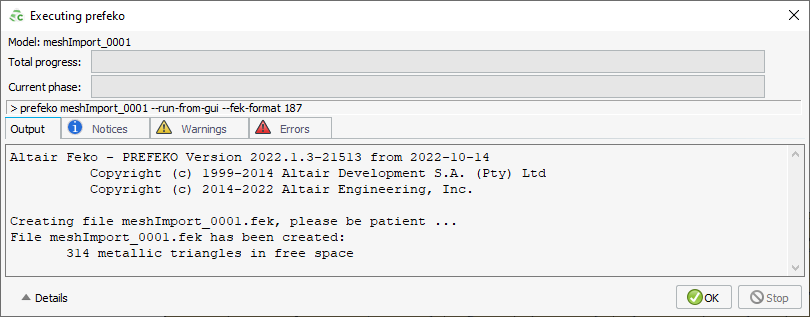 - The dialog is closed if there are no errors or warnings. If there are errors or warnings given, click the Warnings tab or Errors tab to view the relevant information.