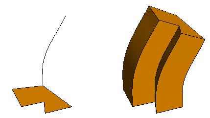 Figure 1. A polygon and fitted spline (on the left) and the polygon swept along the fitted spline (on the right).