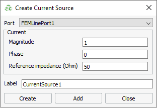 Apply a current source to a line port in a dielectric region solved with the finite element method (FEM) to realise an impressed current source.