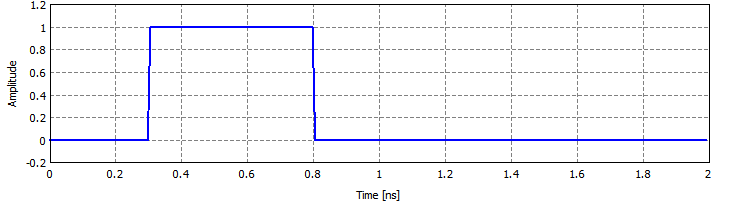 Figure 2. The Signal preview shows the rectangular pulse with a delay of 0.3 ns with a duration of 0.5 ns.