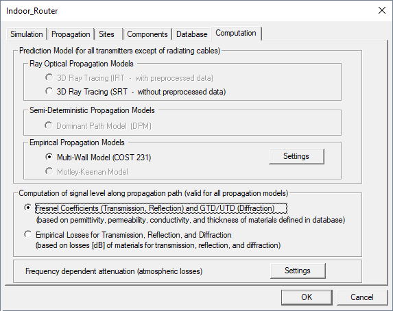 3. Under Computation of signal level along propagation path (valid for all propagation models), click Fresnel Coefficients....